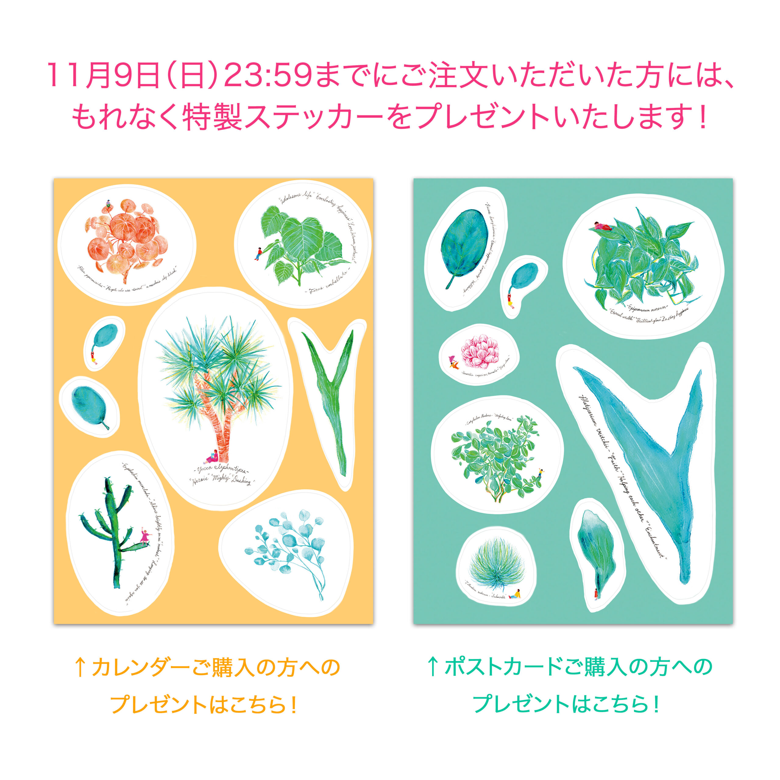 早期ご購入特典のステッカーは、カレンダー・ポストカードそれぞれに異なる絵柄をご用意しています。