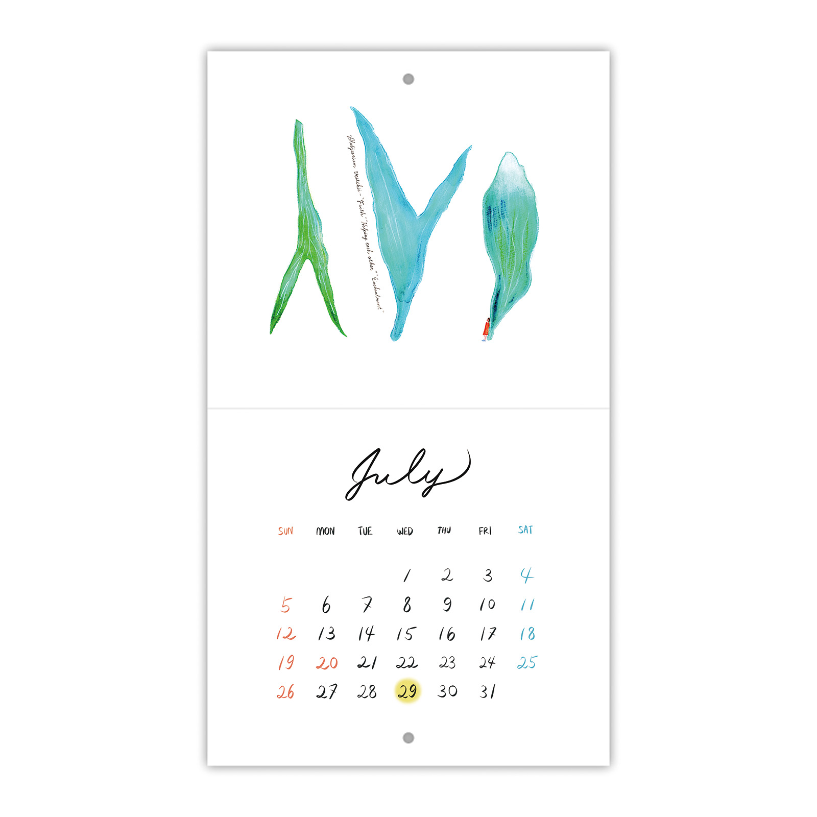 やわらかな色合いと手描きのぬくもりが感じられるカレンダー。