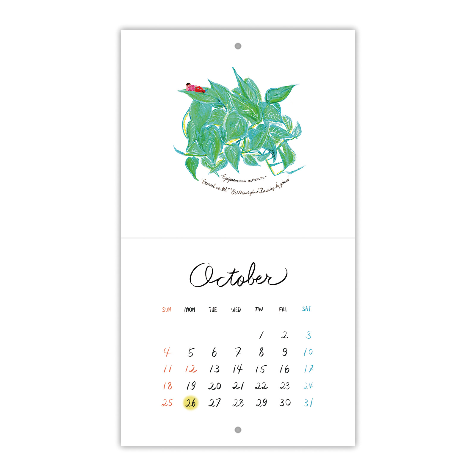 moumoonのYUKAが描く、観葉植物のイラストが2026年のカレンダーとポストカードになりました。
